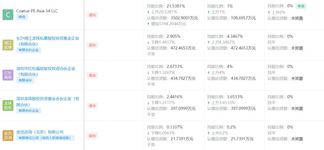 图源:天眼查 红杉中国、美团龙珠退出股东行列