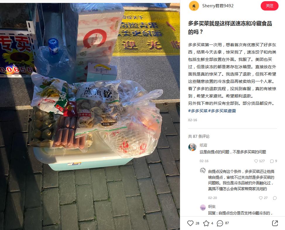 一种来自社区团购,次日达的美团优选、多多买菜、淘菜菜等价格够低但品控堪忧。标准包装的粮油零食及日用品确实实惠,但自提点老板个人的运营素质非常影响收货体验,导致冷冻的肉类水产踩雷率极高。