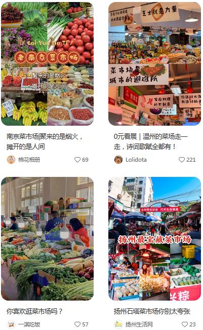 3月份,小红书美食组就发起过一场“菜市场漫游指南”活动,鼓励用户分享有关菜市场的旅游、生活故事。