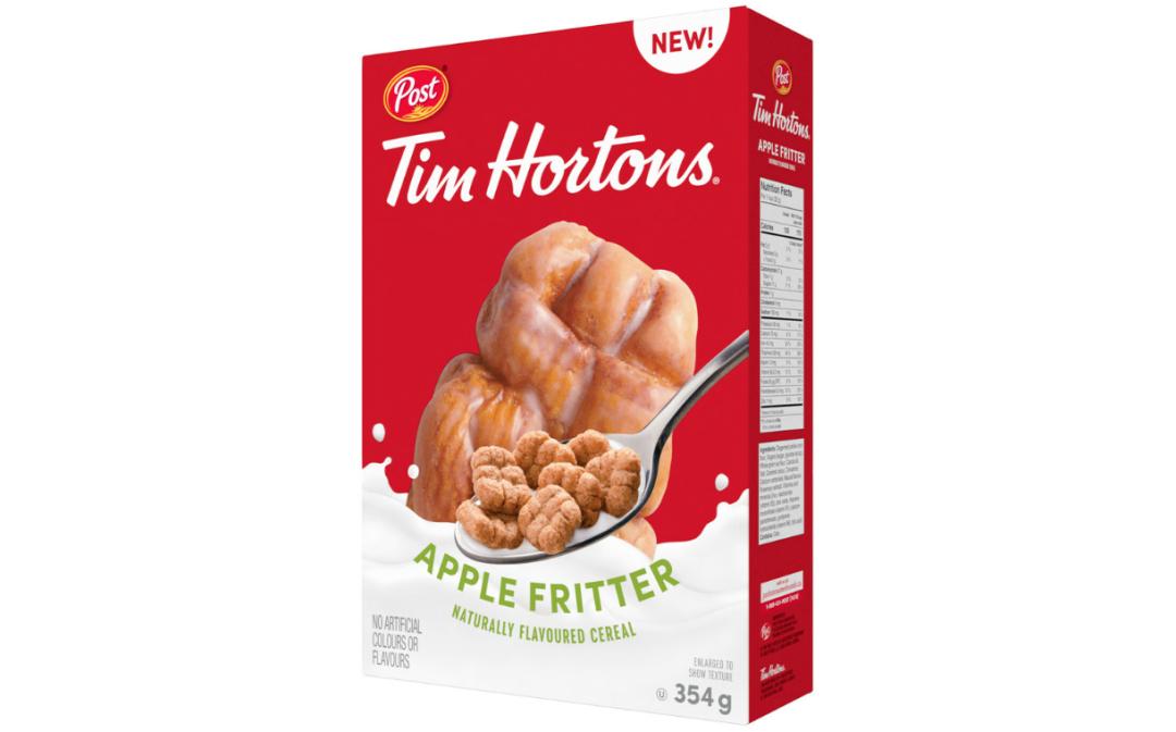 Post Foods Canada联合加拿大咖啡连锁店Tim Hortons共同推出新品:Apple Fritter-flavoured Cereal(苹果馅饼味麦片)。据悉,新品既含有天然苹果和肉桂的香气,同时融合了Tim Hortons甜甜圈的广受欢迎的经典风味,能以麦片的形式为加拿大人提供一种新的途径来享受Tim Hortons甜甜圈的味道。
