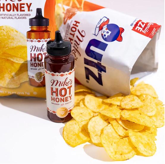 Utz 联合Mike's Hot Honey推出一款薯片新品Mike's Hot Honey Potato Chips。据悉,这款薯片采用了Mike's Hot Honey独特的蜂蜜辣味,以及Mike's Hot Honey 瓶装酱料的包装,并通过设计多种规格以满足不同消费者的需求,包括2.625盎司的随身携带型,以及7.75盎司和13盎司的家庭型可供选择。