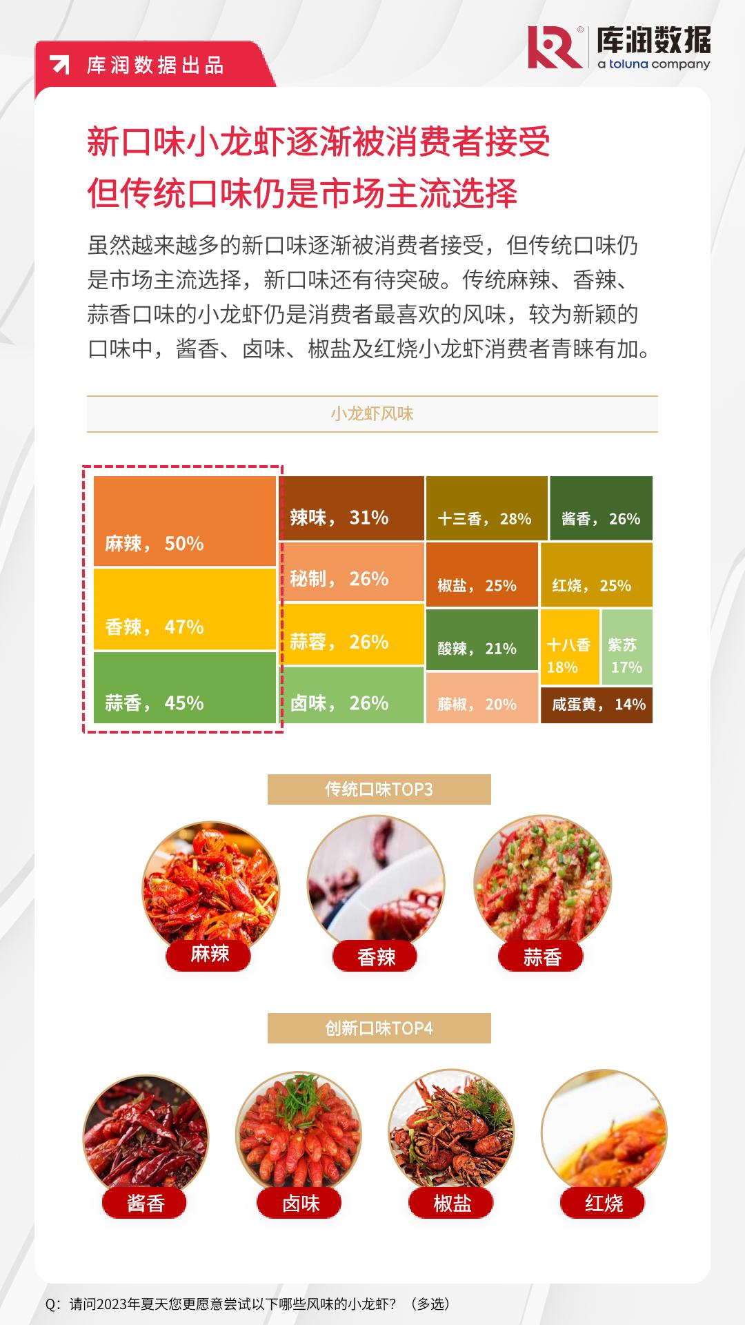 KuRunData库润数据邀请了1000位小龙虾消费者进行在线调研,并结合2022年的夜宵经济自有数据,发布《2023年消费新趋势——小龙虾》,对今夏的小龙虾消费趋势进行分析。