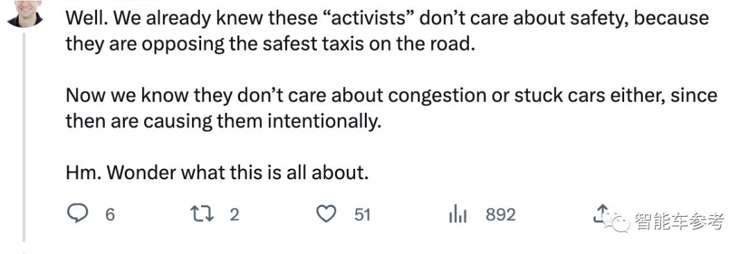 “安全街道反抗组织”,专门在tiktok上发视频呼吁人们一起加入他们针对无人车的行动,还把如何逼停、瘫痪一辆无人车的教程做成详细视频教学。