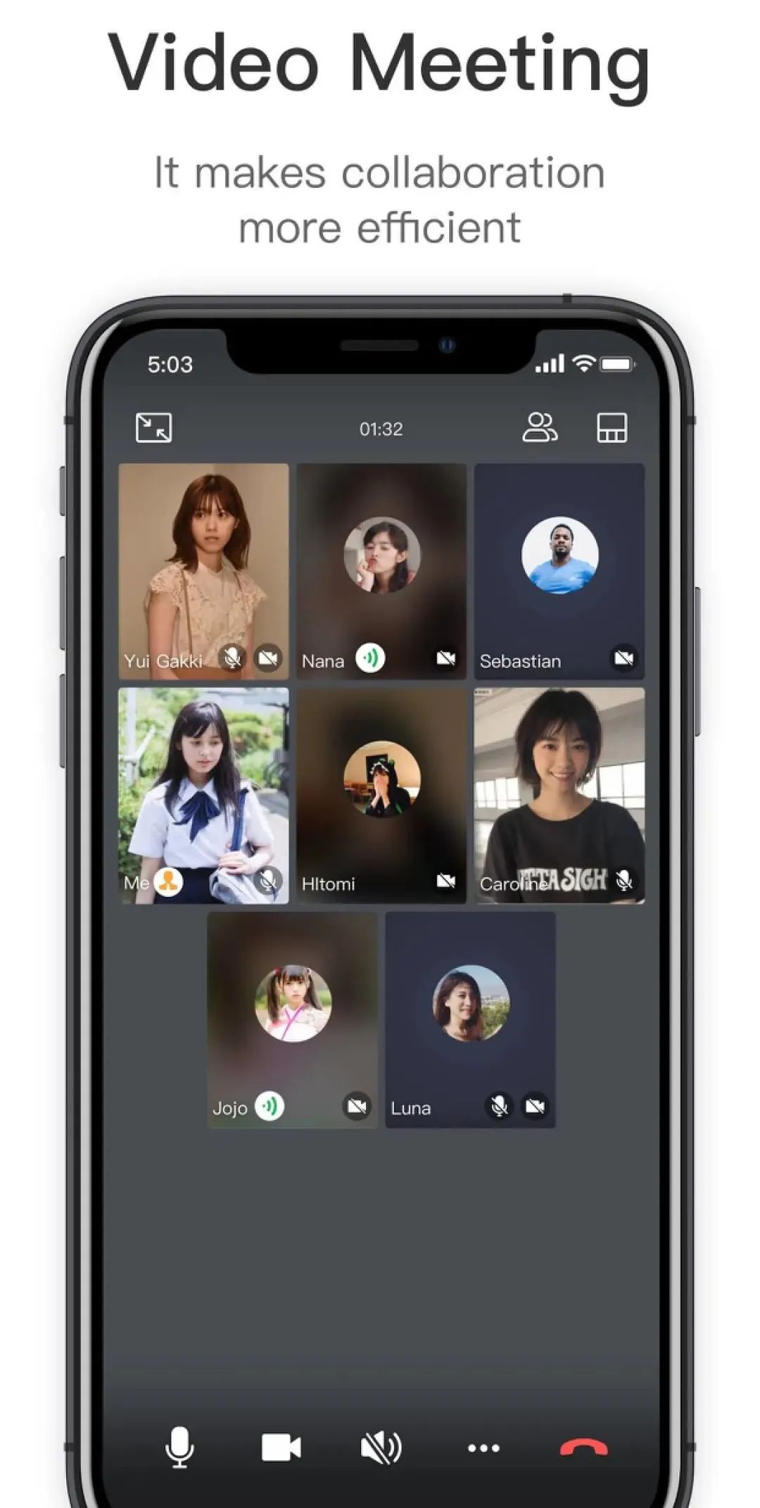 Whalek包含着在线视频会议功能,支持多个人同时在线视频聊天。该功能独立放置在APP的底部导航栏内。