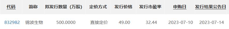 北交所打新股锦波生物(832982)将于7月10日申购,发行价格为49.00元/股,发行市盈率为32.44倍,发行代码为“889799”。