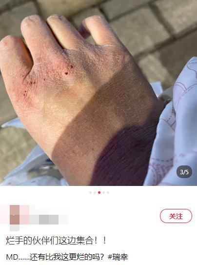 瑞幸的操作台都是钢制,边角等地方很容易在手上留下各种细小的伤口,带着伤的手必须反复浸泡在高浓度消毒水里,每次雷打不动二十秒。加之没有手套的保护,洗手洗到蜕皮,瑞幸伙伴的手更容易受伤,仅次于后厨切菜。