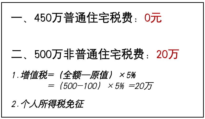 一套同样内环内的房子,450万的普宅和500万的非普宅之间,税费差价至少可以有20万。