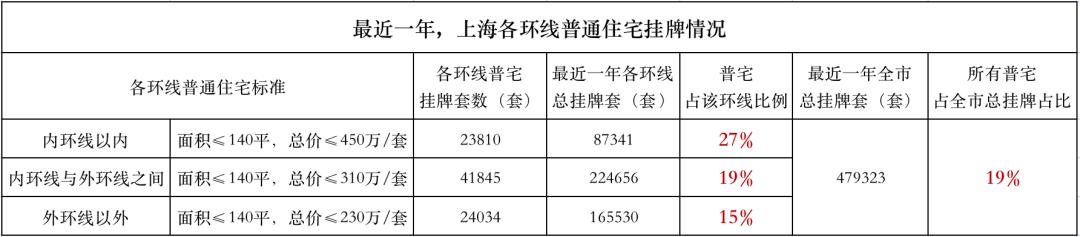 从最近1年上海各环线的普宅挂牌情况,我们可以得到两点信息 。