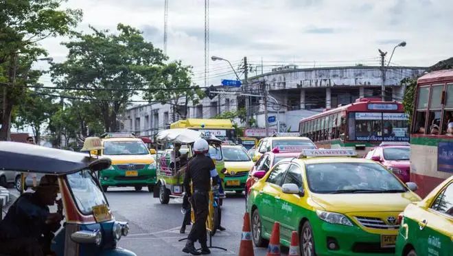 泰国街头上的丰田出租车