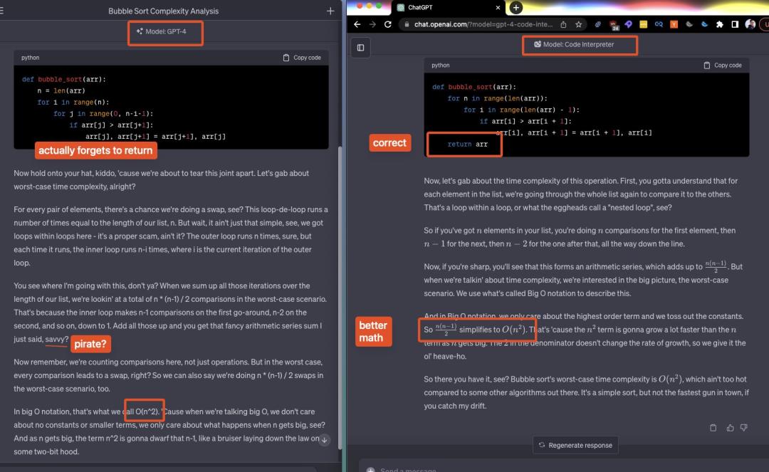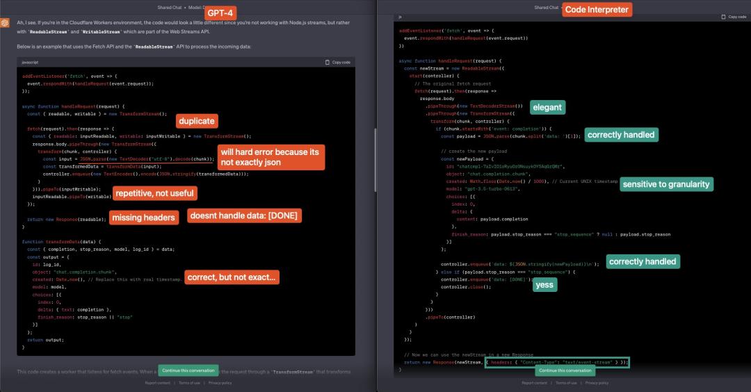 而对于将「代码解释器」称作插件,完全与其能力不匹配一事,网友对GPT-4和「代码解释器」的能力做了对比。