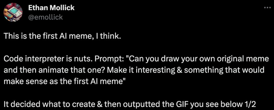 Code Interpreter解禁后,可谓游戏规则的改变者。与Midjourney联动做大片,表情包生成,动嘴做表,各种潜能全被一众网友们挖掘出来了。
