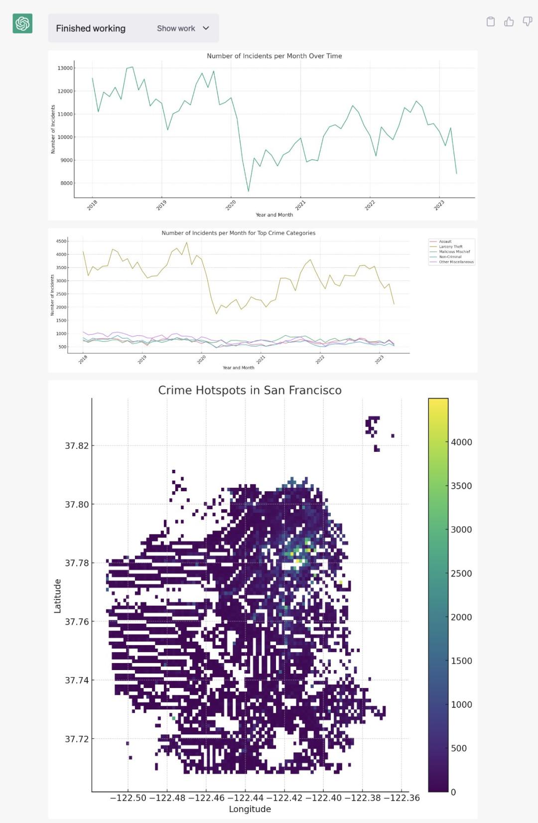 还有用ChatGPT将旧金山犯罪数据的CSV文件变成了热图。