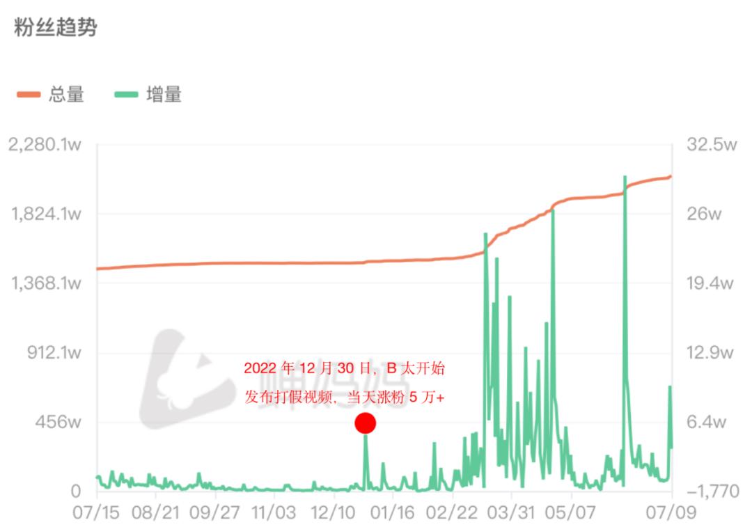 自2022年底打假以来,B太涨粉明显