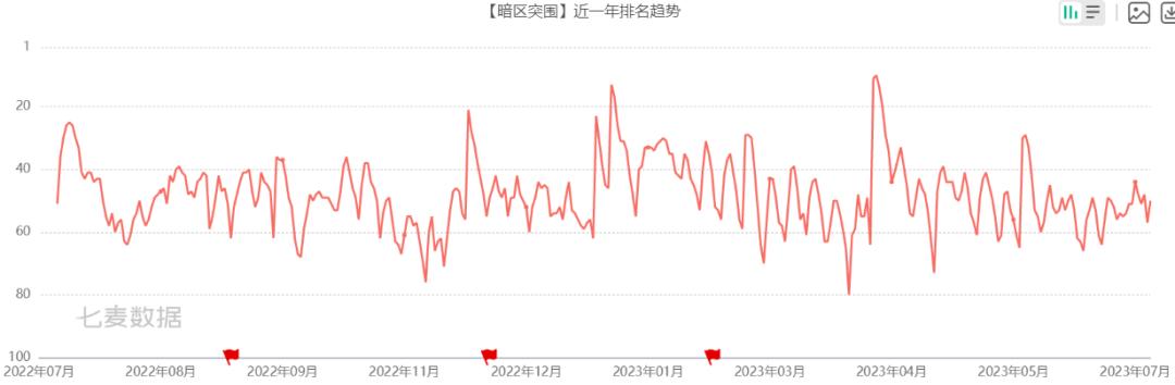 还是以《暗区突围》为例,目前在生存撤离这一细分赛道中,几乎找不到能与其对抗的产品。从游戏稳定的排名趋势也可以看出,这一玩法的核心用户基本都被牢牢掌握,游戏已在用户层面获得巨大优势。它不仅能在竞争中充当护城河,更能帮助该赛道从小众冷门变成主流。