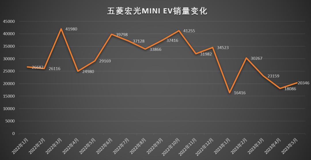 数据更加直观。5月,宏光MINI EV总销量为20346辆,与去年同期相比下降30.35%;今年1-5月累计销量108274辆,同比下降27.26%。