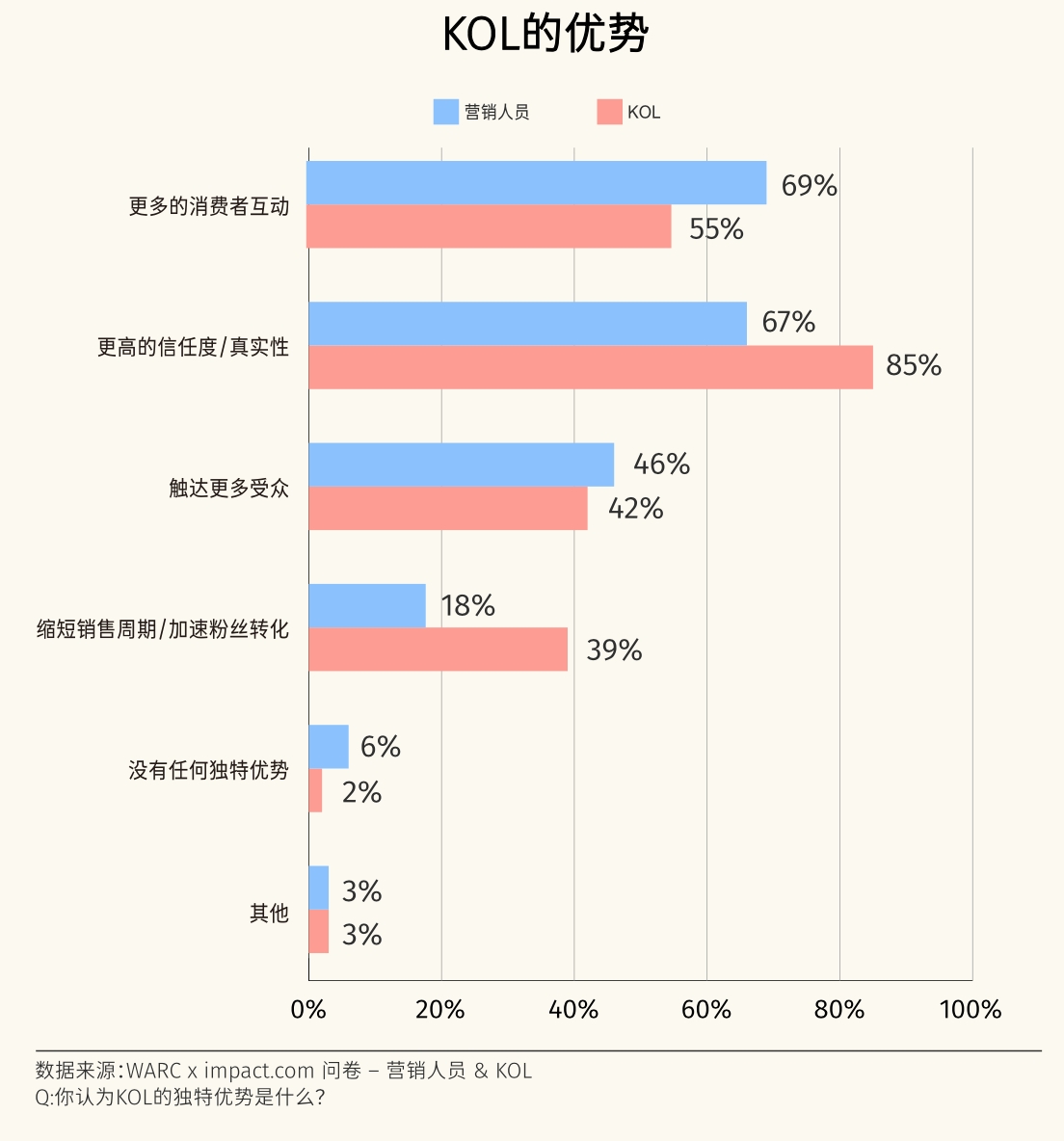 并且这类营销方式,摆脱了广告带来的抵触。《报告》直接点出,有67%的海外营销从业者对于KOL营销优势的判断,围绕在信任与真实两个关键维度。甚至在长期与KOL合作营销的人员中,有73%认可。毕竟,试水KOL营销往往能够带来明显的品牌数据提升,无论是曝光还是转化。