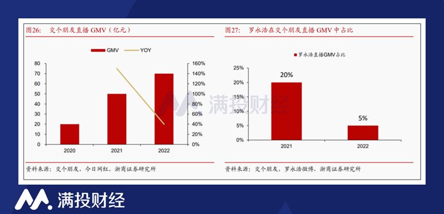 而在个人IP淡化方面,2021年罗永浩在交个朋友直播间的GMV占比为20%,而到了2022年,这一比例下降至5%,罗永浩IP对公司的影响已经明显淡化。