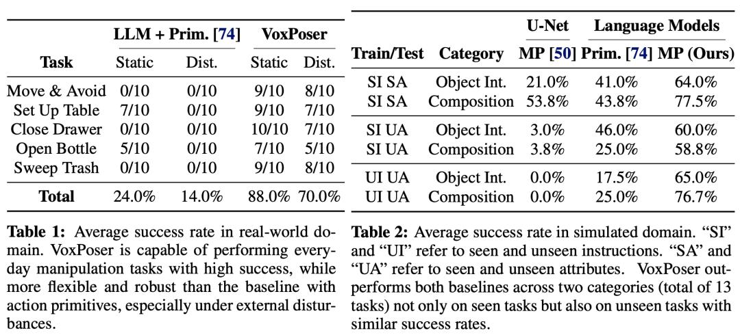 另外,模拟领域中,VoPoser在两个类别(总共13个任务)上的表现也更好。