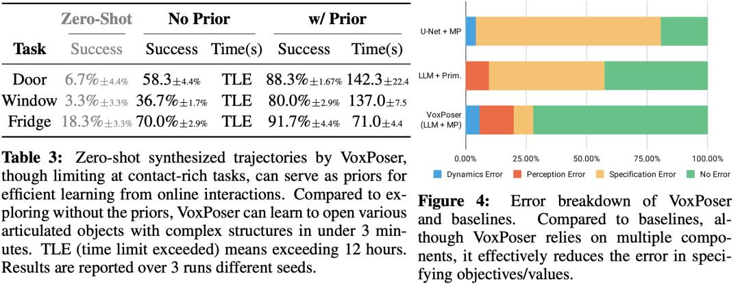 由于语言模型输出在整个任务中保持不变,因此VoPoser可以缓存其输出,并使用闭环视觉反馈重新评估生成的代码,从而可以使用MPC快速重新规划。