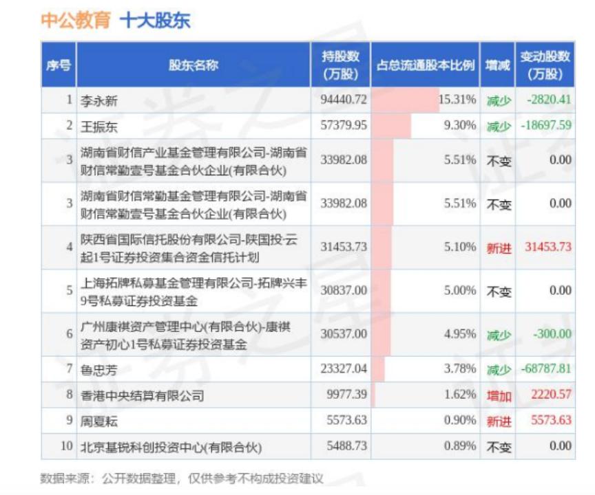 目前,中公内部有两种不同声音,大股东有减持也有增持。6月28日,中公教育发布公告,股东广州康祺资产管理中心 (有限合伙)-康祺资产初心1号私募证券投资基金于今年6月27日合计减持650.0万股,占公司目前总股本的 0.1054%。这也是该股东今年来第二次减持。