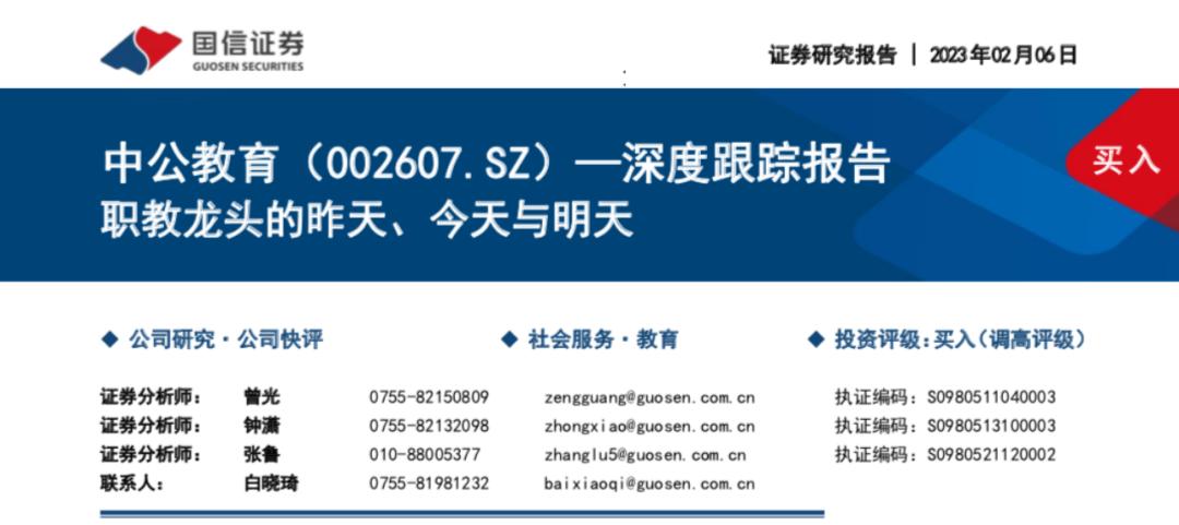国信证券和安信证券等机构发布研报,对中公教育(002607.SZ)调至“买入-A”评级。