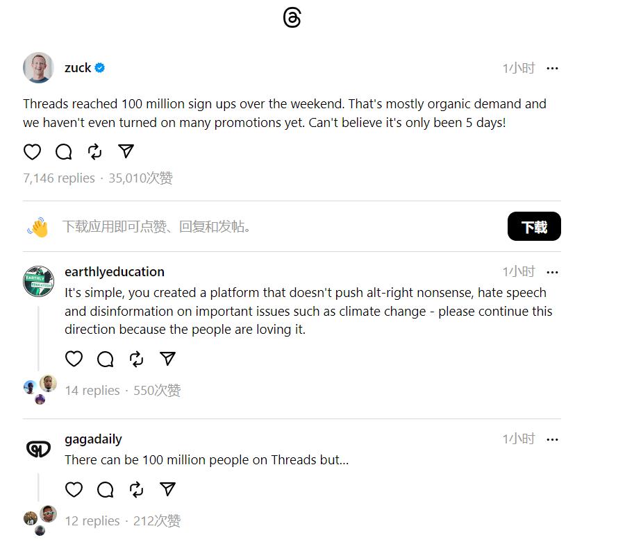 这离Threads这款社交产品的诞生才不过4天的时间。