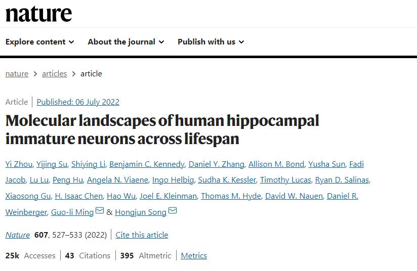 于2022年7月发表于《自然》的这一发现有望能解决一个长期的争议——在成熟的人类大脑中是否会产生新的未成熟的神经元,该过程也叫“成体神经发生”(Adult Neurogenesis)。