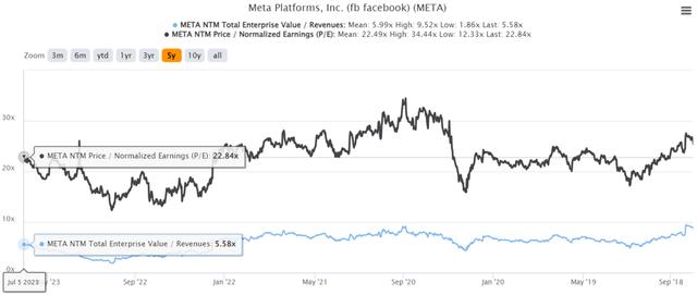 Meta5 年 EV/收入和市盈率估值