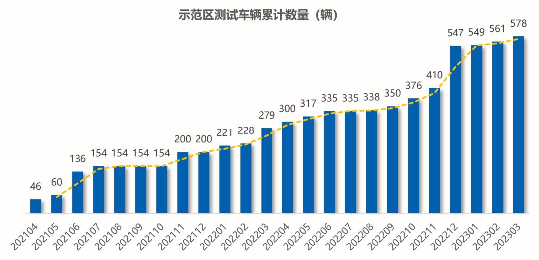 再说体验无人驾驶,截至2023年3月,示范区已为萝卜运力、小马智行、北汽、滴滴、文远知行、智行者、Auto-X、新石器、京东、美团等19家测试车企,已发放牌照共计578台,其中乘用车280台,多功能无人车283台,自动驾驶商用车7台,网联巴士6台,无人接驳车2台。示范区累计自动驾驶里程1449万公里。