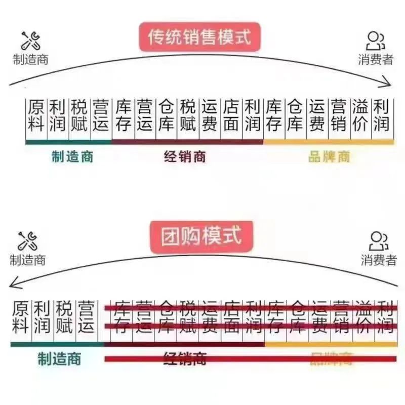 团购嘛,全国各地大家买的多就成团了,总部拿着我们的订单去谈低价,买的人多,东西价格就低。