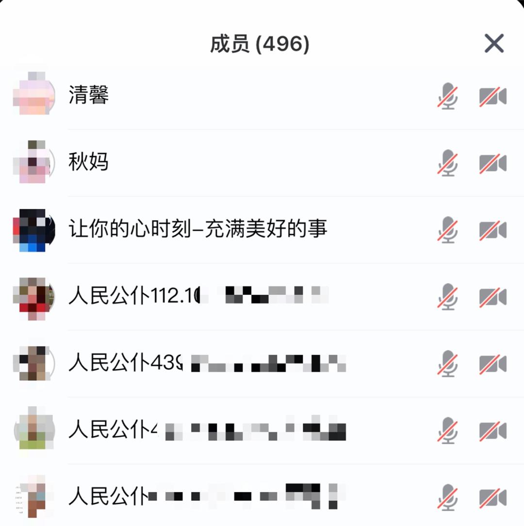 线上会议成员有496人,有宝妈、导游等|图源作者截图
