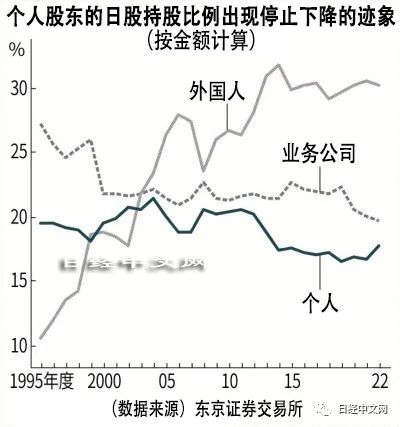 个人投资者远离日本股票的局面在改变。东京证券交易所等日本4家证券交易所7月6日发布的2022年度日本全国上市企业股东分布情况调查显示,按金额来看,个人持股比例为17.6%,两年来首次上升,达到2013年以后9年来的最高水平。在股市行情剧烈波动的情况下,个人投资者纷纷高抛低吸,另外,日本的年轻人涉足资产运营的动向也在不断扩大。