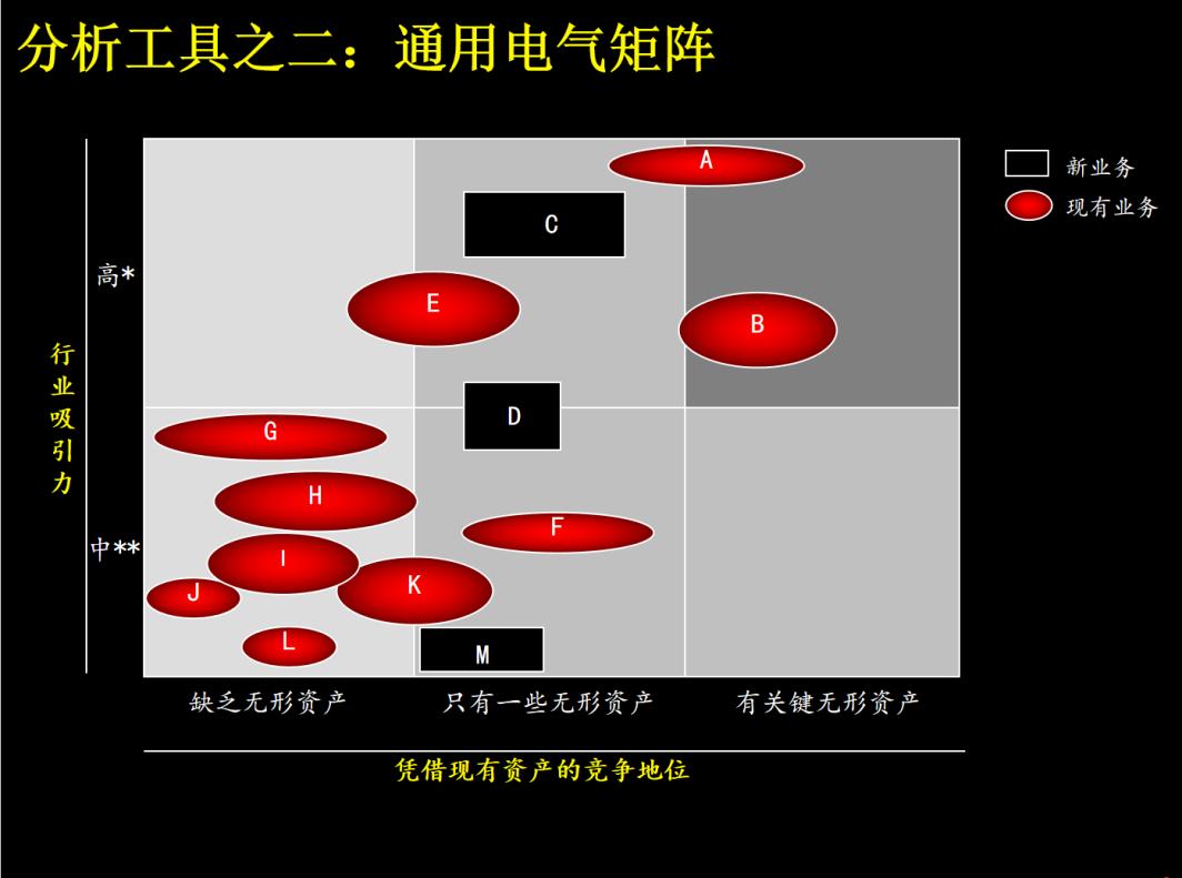 上文我们说过版权问题或者说无形资产问题,可能是B站,甚至是绝大多数企业做大做强的核心瓶颈。接下来,我们用一个战略分析的方法——“通用电气矩阵”——来说明这个问题。