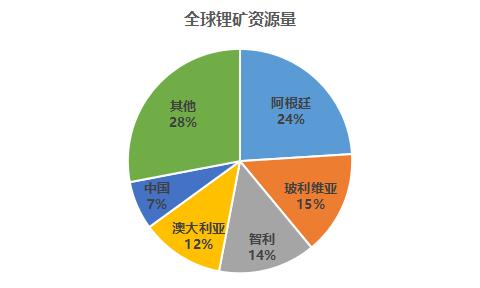中国的锂资源总量为680万吨,占全球总量的7%,国际排名第六位。