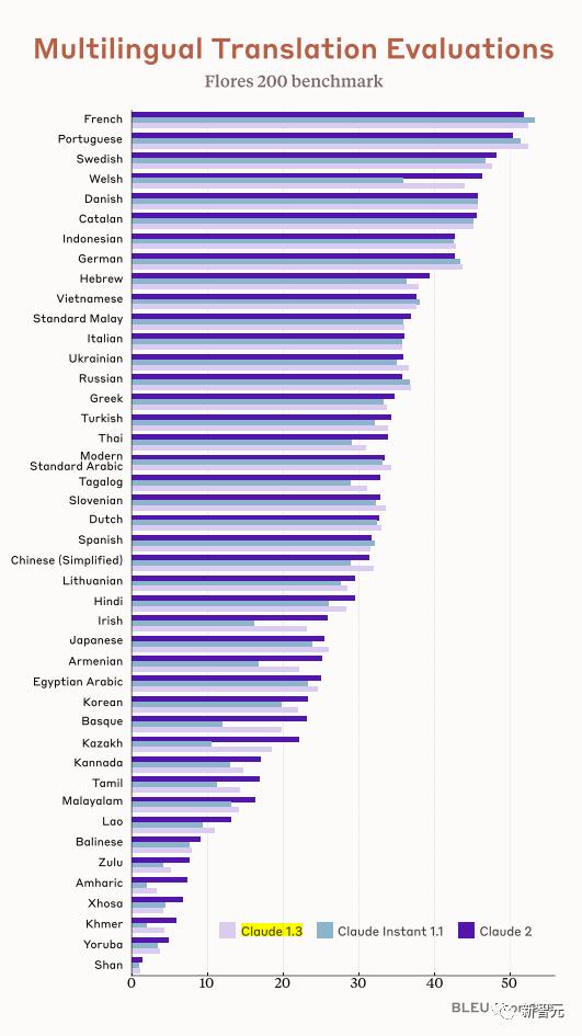 结合了Claude的多语言能力,Claude 2在多语言支持方面也非常能打。