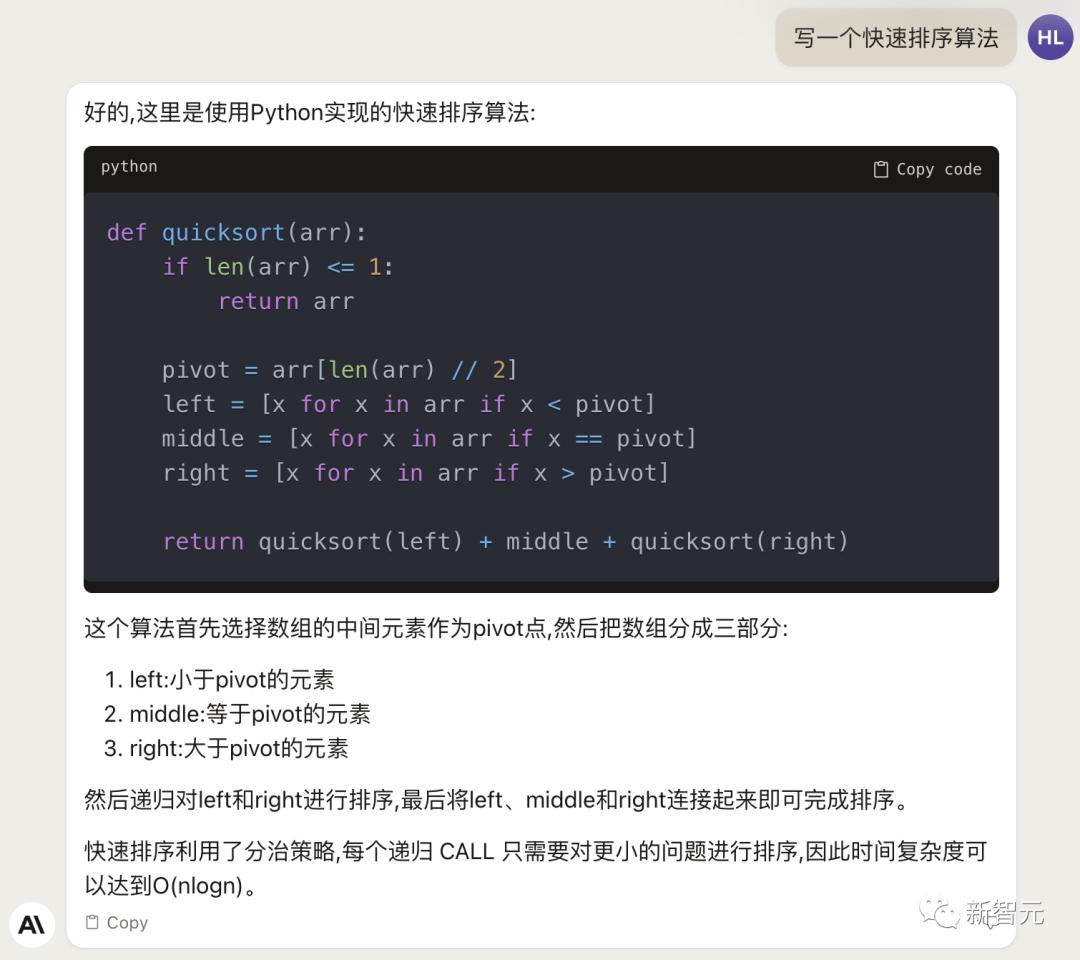可以看到,Claude 2的中文还是很溜的,不仅分析了代码,而且还介绍了算法的复杂度。