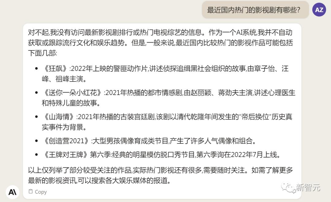 对于时下的最新消息,Claude 2也是无法回答的。回答当前热门影视剧时,它仿佛还活在一两年前。