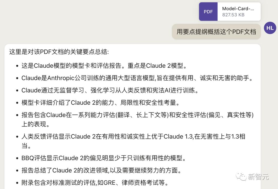 你可以上传PDF之类的文档,然后基于PDF进行对话,上下文的长度,比GPT要大。(不过有用户反馈说,Claude 2在指令识别方面还是不如GPT)