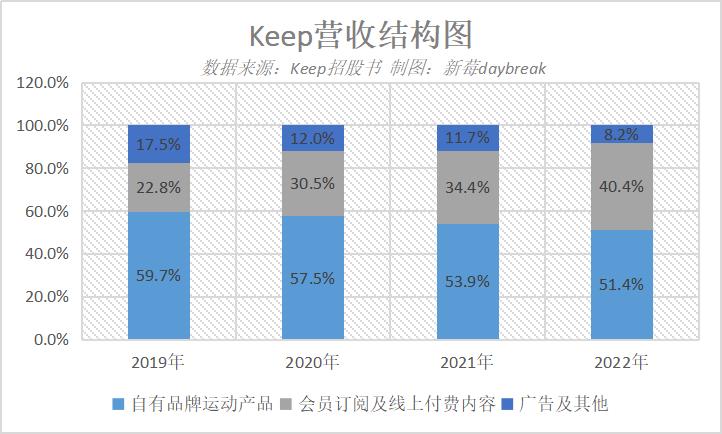 2019年至2022年,自有品牌业务一直为Keep贡献着五成以上的营收。这是Keep最常被提及的一个特点,这属于电商公司的逻辑。