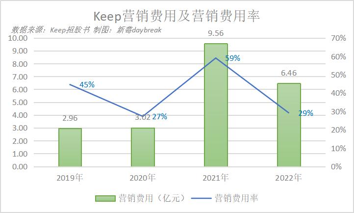2022年,Keep的营销投入相比2021年减少了近3亿元,其中主要是减少了与综艺节目合作的品牌活动支出,也缩减了在短视频平台的投放。营销费用率的波动变化也很大,2022年比2021年减少了30%。