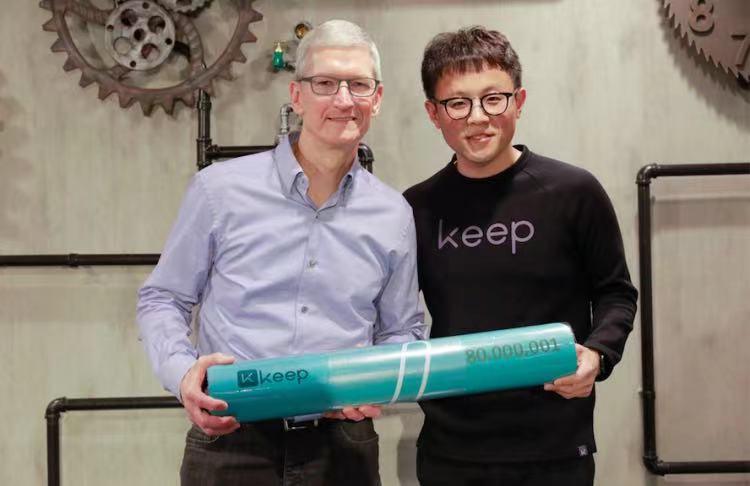 早在2017年8月,Keep对外公布的注册用户数为1.2亿人。当时外界对这家公司的印象是,不缺流量。就在当年的3月,一位特殊用户苹果CEO蒂姆·库克还来中国访问了Keep公司。王宁送给库克一个印有80000001的瑜珈垫作为礼物。