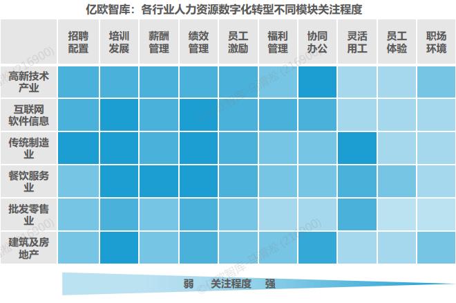 此外,不同行业既有通用的人才管理需求,也有根据行业属性进行定制化的需求,这也导致不同领域的企业对人力资源数字化转型的侧重点各有不同。