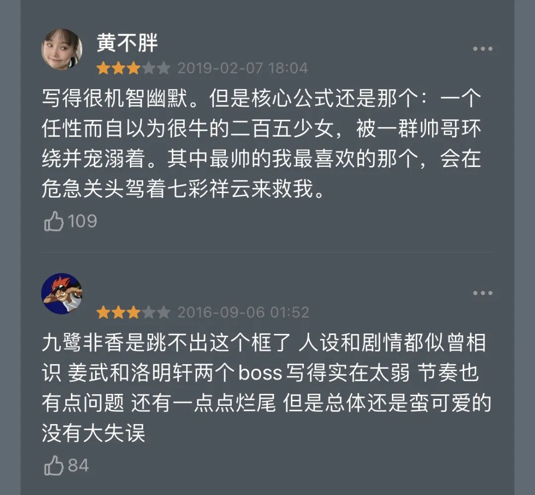 只能说,作为一个被成熟开发的市场,仙侠设定的排列组合经过了多轮筛选,九鹭非香确实找到了一定的市场基本法——选择性地进行一些市场成熟元素的加减法,得到一些有新意的新组合。从结果来看,至少小说改编成剧,效果都还不错。