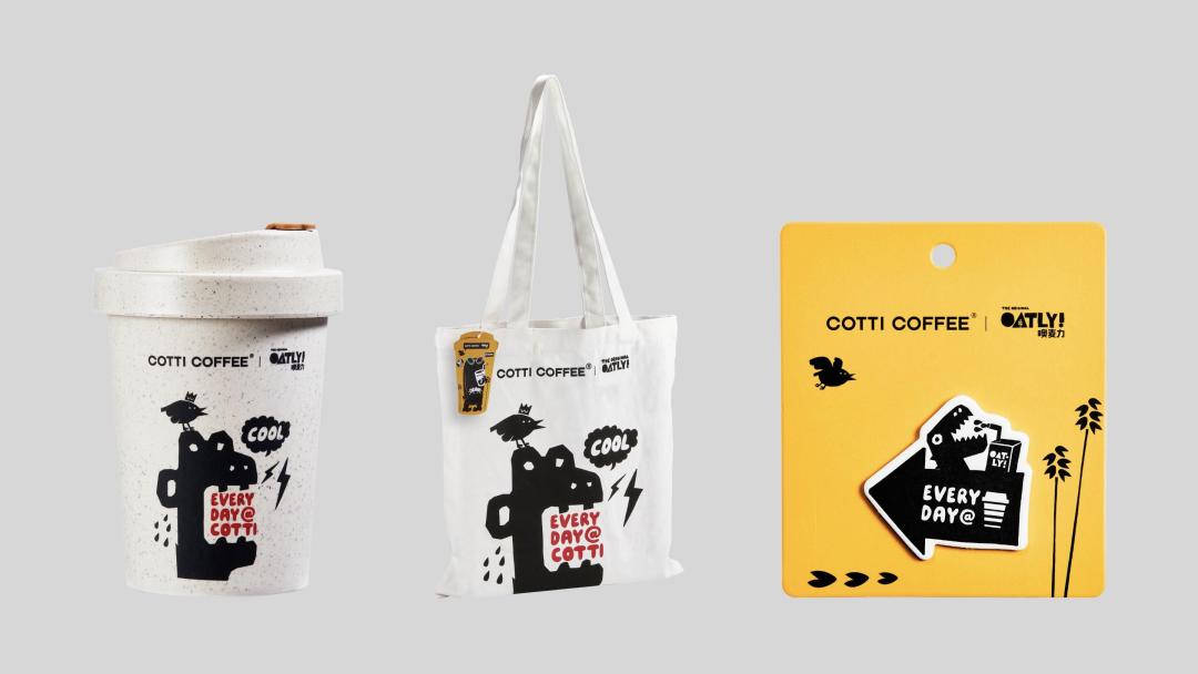 在此次联名的定制周边和门店物料上,库迪咖啡结合当下流行的环保大趋势,创意推出了——COTTI COFFEE x OATLY联名咖啡渣环保杯、环保帆布袋以及环保徽章等惊喜礼物。线下门店则推出定制冰杯、热杯、杯套和手袋等联名物料,充满潮流设计感的单品彰显出新世代消费者的活力和品牌贴近年轻人的诚意。