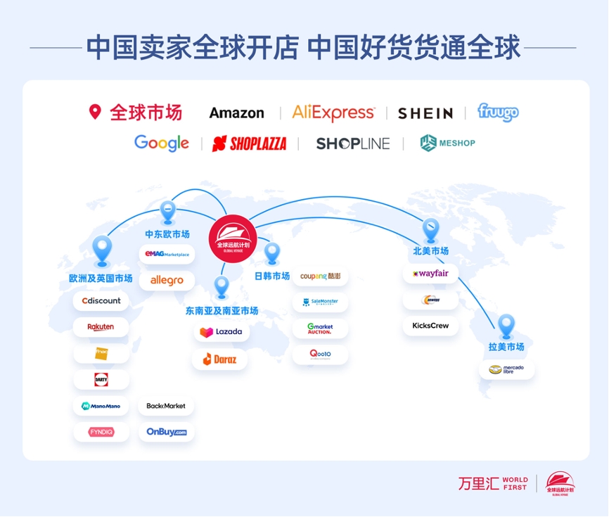 通过万里汇全球远航服务,大批跨境电商卖家快速全球开新店,拓展海外市场