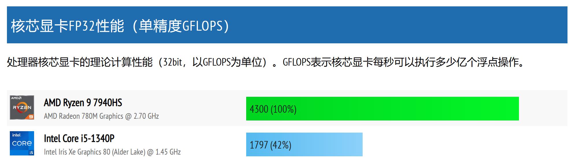 (7940HS VS 1340P 核显性能对比,图源:cpu-monkey)