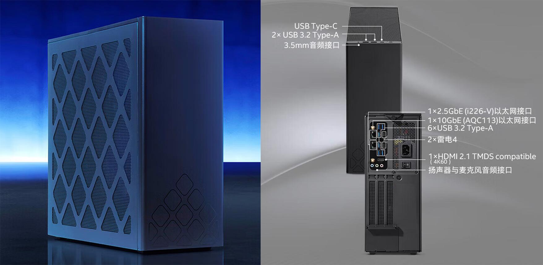 时间加速来到第8代NUC时期,Intel与世敌AMD强强联手,结合各自所长,推出当时综合实力最强劲的mini PC——冥王峡谷(Hades Canyon)。其顶配版本搭载了拥有i7 CPU性能,比肩GTX1060 3G显卡实力的i7-8809G处理器,轰动一时。同时,双网口的引入,又给了NUC两个新的身份——软路由和NAS。NUC的可玩性与实用性进一步得到提升。