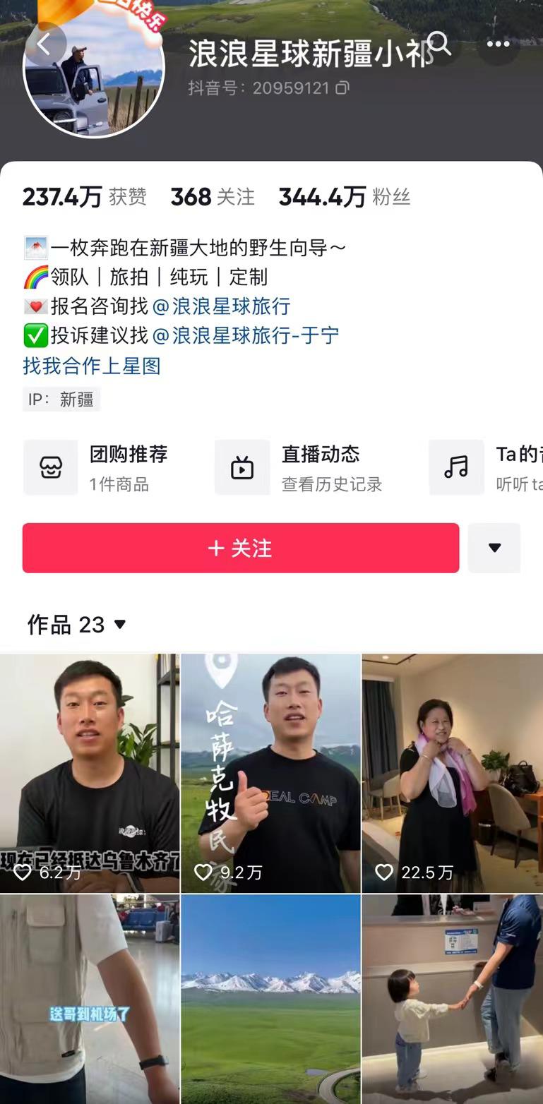 新疆导游“小祁”就是这其中的大赢家。起因是一位游客在抖音夸小祁,不带客人去拿回扣的店、推荐当地特色便宜餐馆、帮游客带孩子和提行李、勤劳又实在。很快,小祁的个人账号在抖音上走红,在6月30号之前,小祁在抖音上只有几百个粉丝,短短3天,他就涨粉300万,目前,小祁个人的带团安排也已排到10月份之后了。