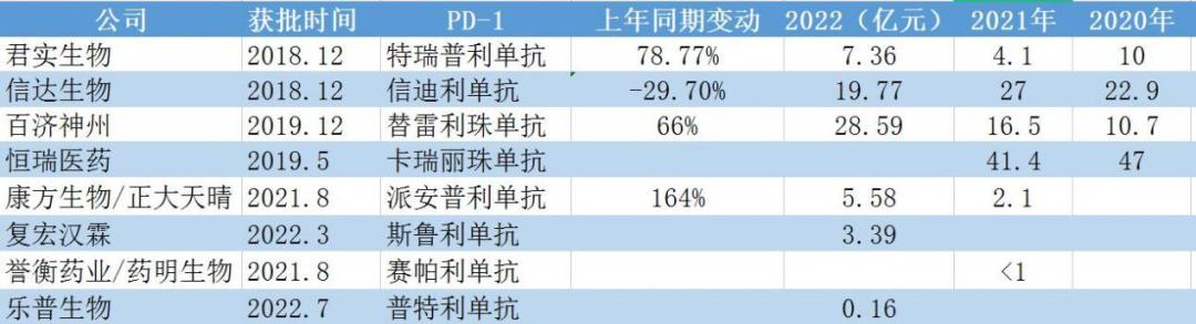 然而,尽管营收保持着较快的增长,百济神州的替雷利珠单抗仍然难以逃离PD-1内卷化的泥潭。截至2023年3月,国内已有10款PD-1单抗获批上市,其中8款产品为国产,2款进口产品,另外还有6款PD-L1产品上市,竞争日趋白热化。