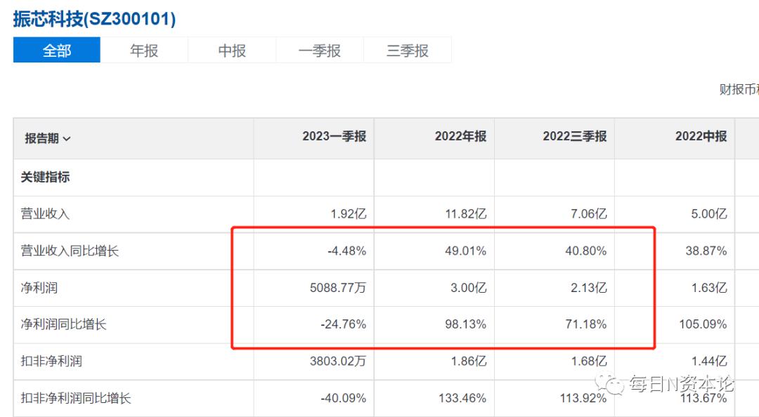 此后,振芯科技的净利润又开始奇迹般地同比大幅飙升。到2022年,其净利润高达3亿元,同比上涨近一倍。这也是其上市以来的最高峰。2023年一季度,振芯科技营收1.92亿元,同比下降4.48%;净利润5088.77万元,同比下降24.76%。